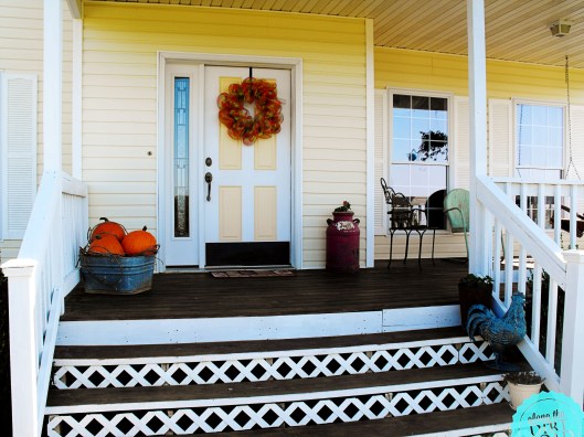 A porch, big or small, always makes a statement. I think that the mood of the inside of your home can be felt on your porch. Why not set a pumpkin on your porch? When you drive up to your home…it will be there…to greet you.