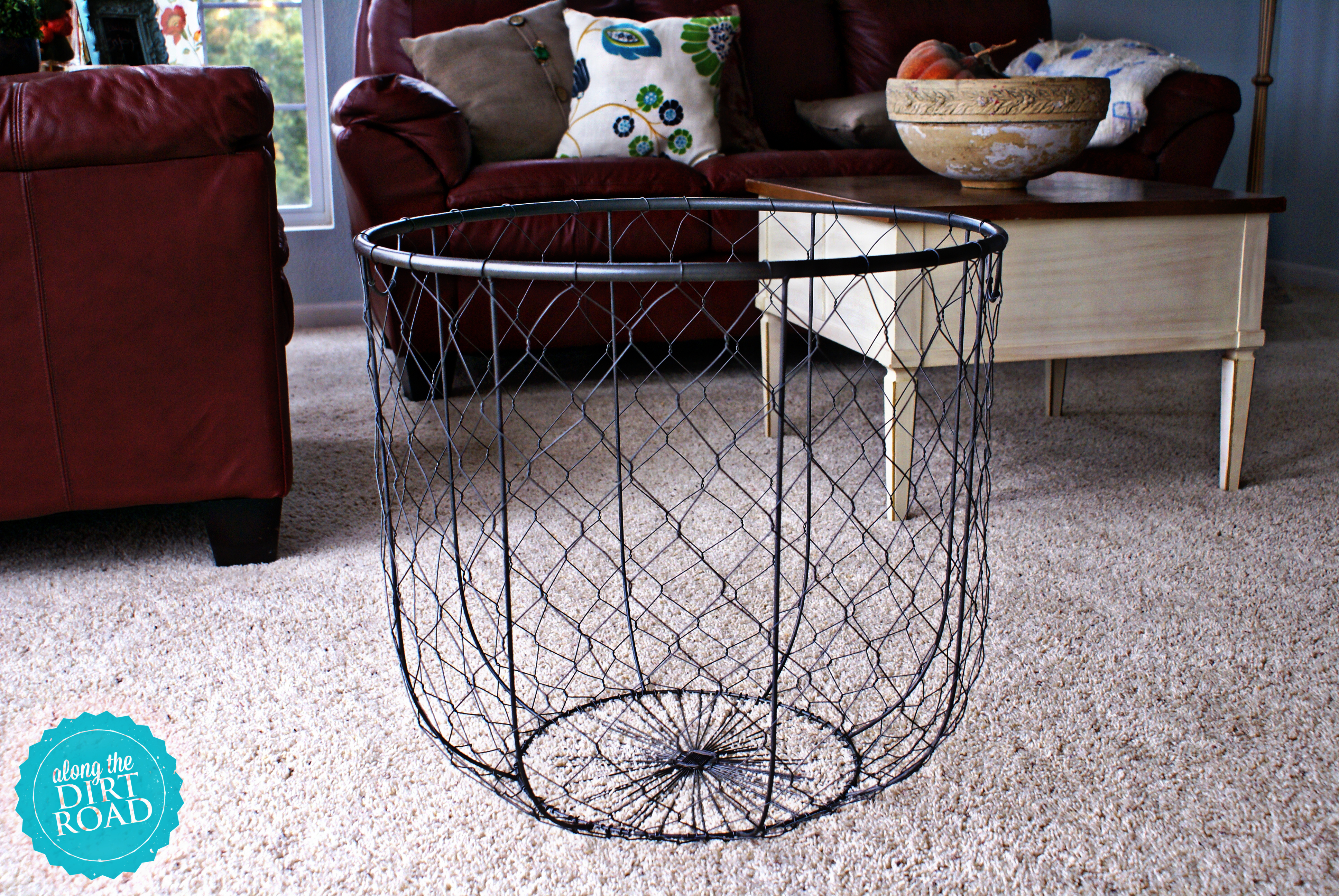 So….about the ostrich farming. Um…well…that was a joke. BUUUUUUUUUUUUUUUUUT…I did find a really super-awesome basket while we were away. Of course, it caught my eye right off of the bat because it was made of “chicken wire.” I had this vision of just what I could do with it. I dreamed of how cozy it would look in our home. How cozy it would feel to have it there while I was cooking a big pot of chili. What is wrong with me? Why does everything revolve around chili in the fall? Don’t know…don’t care….love me some chili!