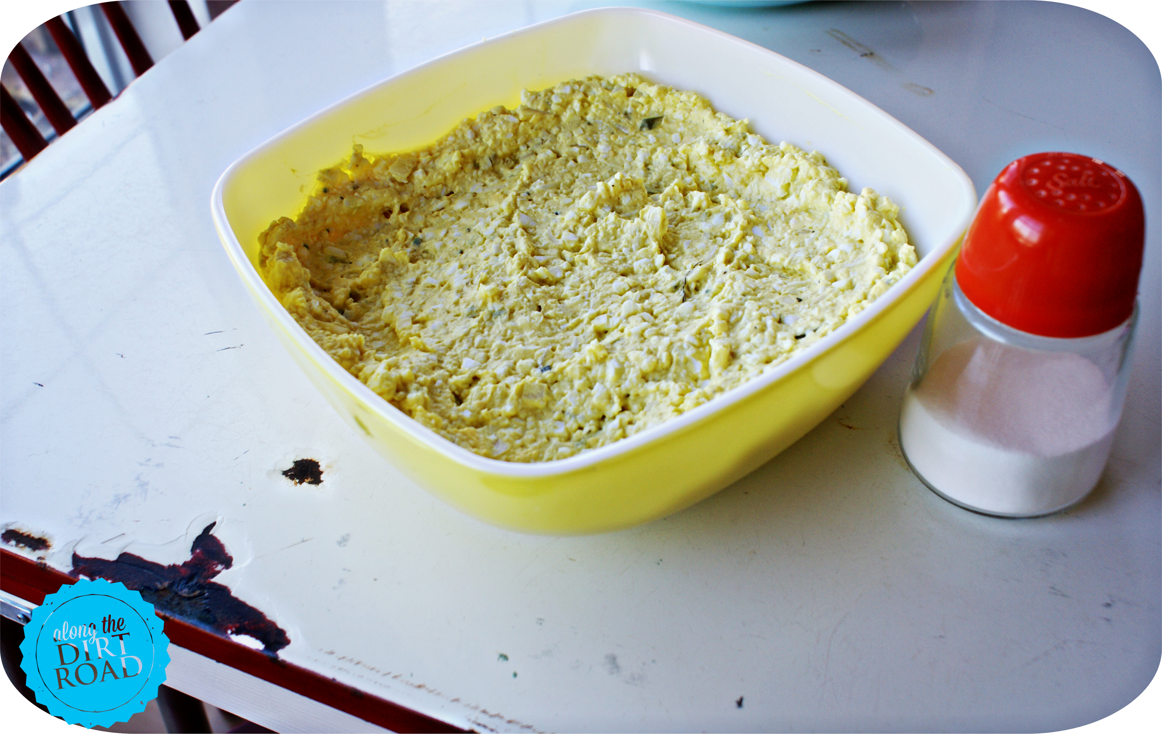 Do you love egg salad? Do you hate egg salad? Are you wondering why I made egg salad? Well….when you have several chickens…you feel the need to eat eggs. We sell eggs and give eggs away, but we feel obligated to eat them too. 😉 I love whizzing by the egg cooler at our grocery store and knowing that I don’t have to buy them because my “little ladies” are working on that at home.