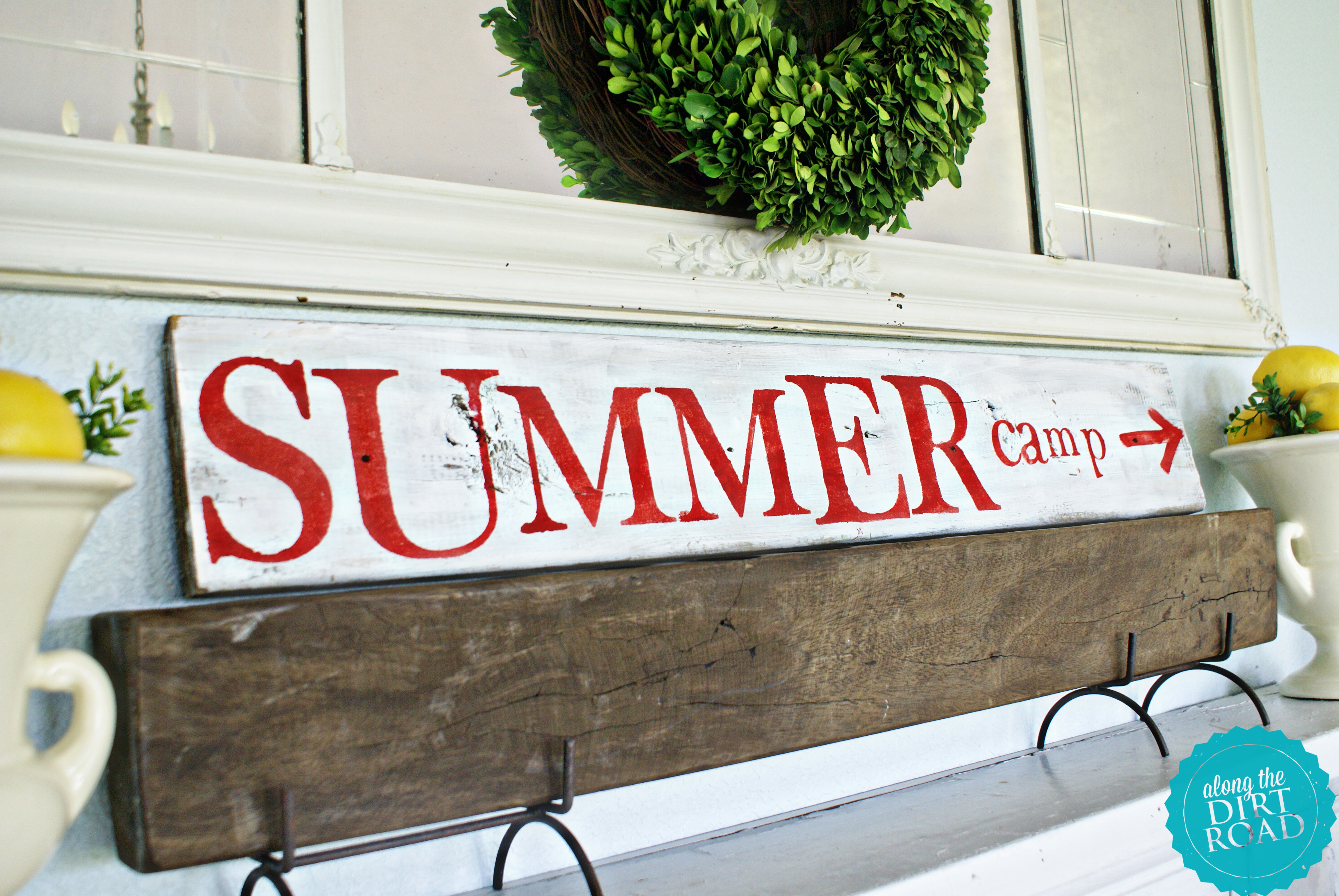 I thought about making a banner that said SUMMER on it. I have seen some adorable stuff lately. You bloggin’ gals out there, are amazing. Then I remembered this sign that I made last year and decided to just use that and then make a burlap banner.