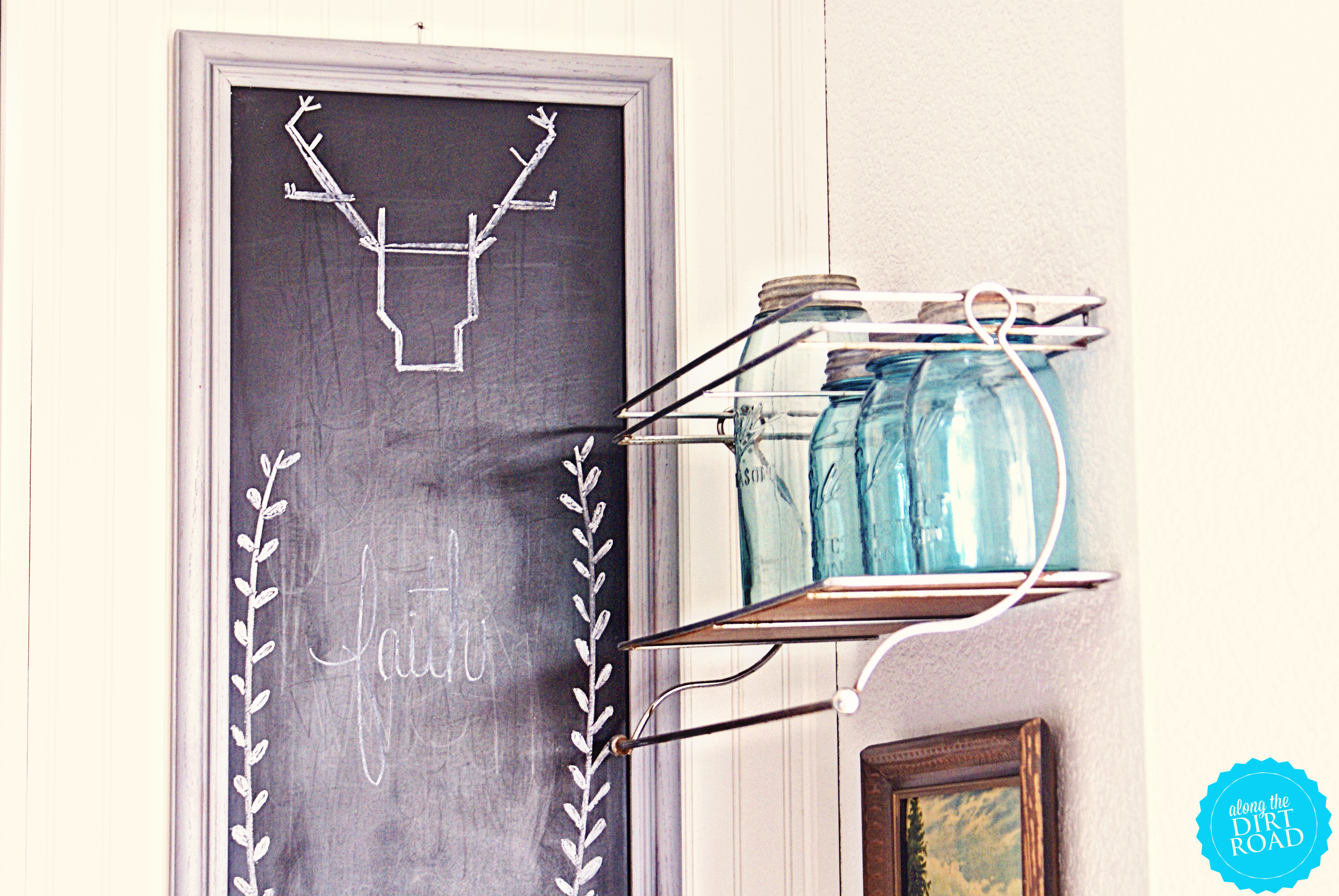 You all already know that I love the antique Ball jars. I love the clear glass…but the blue are my fave. Surprised? I didn’t think so. They just add “happy” to the Farmhouse. It’s a good thing to love the things that you surround your family with. I say “love” lightly. We know that “love” is actually not to be bestowed upon things…but God and others. I do think that it’s important to try to make a happy home full of peace for your family. A refuge from this crazy ol’ world? Yes, please.
