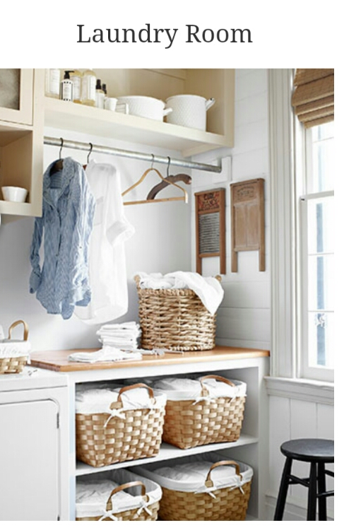 As far as projects go….I am thinking about dragging my Longaberger baskets out of hiding…after seeing this shot. This is from Country Living. Aren’t those baskets amazing!? It inspired me…in the laundry room dept. I will let you know what I come up with. π
