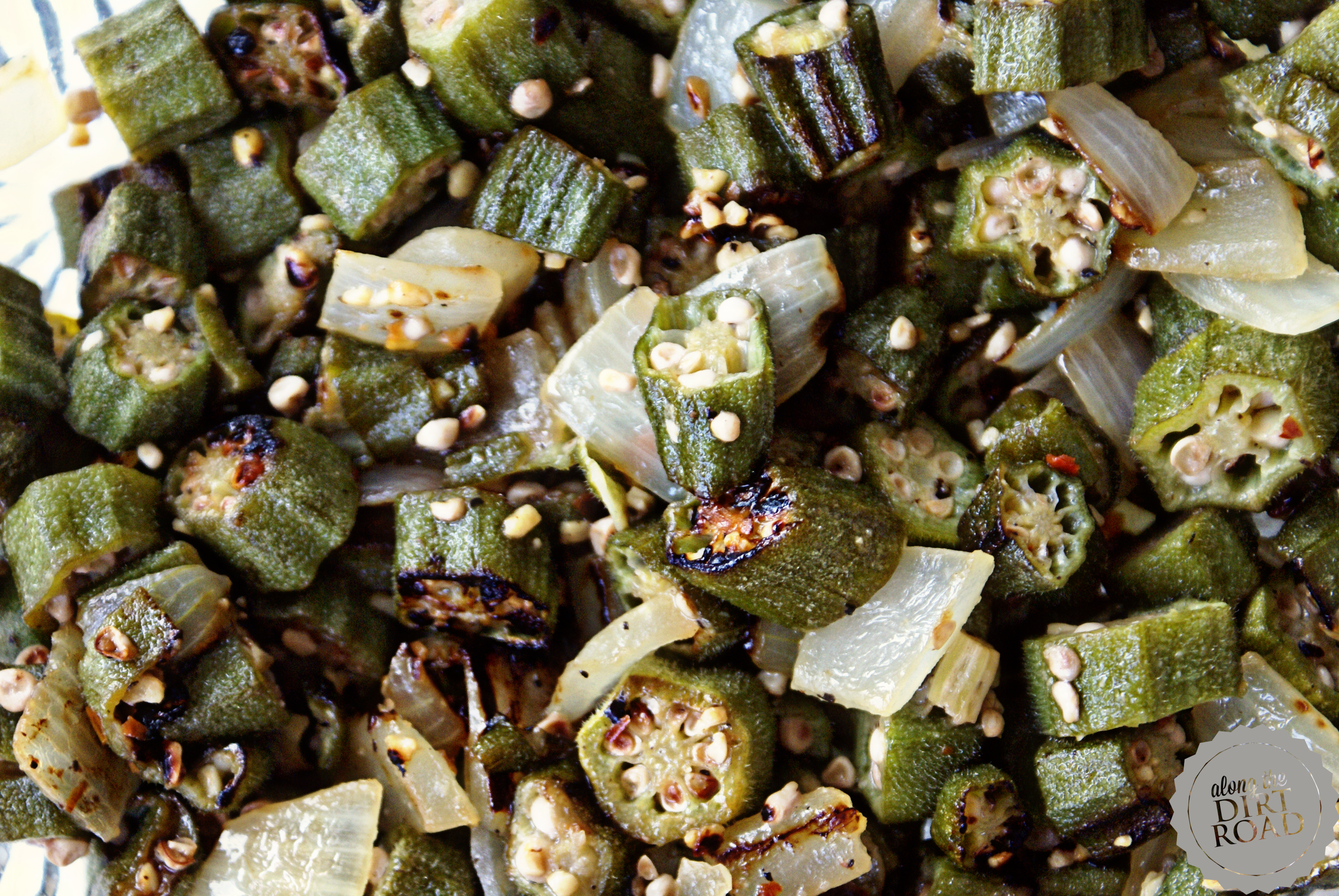 Heat olive oil in pan, add minced garlic and onion. Stir and let garlic turn golden. (Don’t let it burn…bitter, bitter!) Add okra and then season with s & P and whatever seasoning that you desire. (It’s great with nothing…but you could use a lemon pepper or whateves. 😉 ) Keep stirring and “frying.” When it gets done…to your liking…enjoy! This is a wonderful summer side…or it can be a meal in itself. If you love okra and tomatoes…towards the last few minutes throw in some halved grape or cherry tomatoes. Cook until they are heated through. DELISH! (Oh yeah…and I don’t really do measurements. Just because I figure you can decide how much okra, minced garlic and onion that you like. My Dirt Roaders are smart that way. If you used a ton of okra…add a bit more oil.)