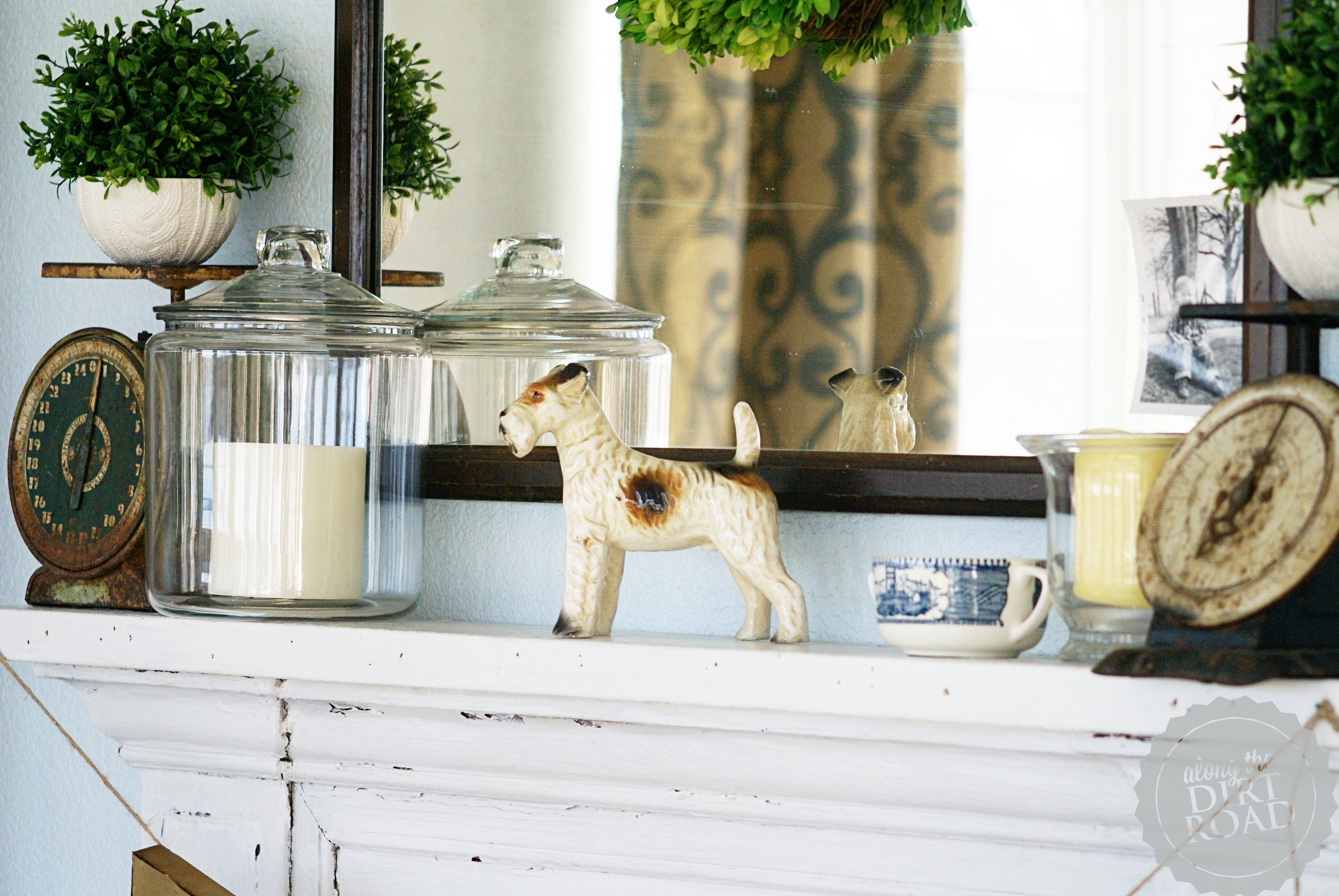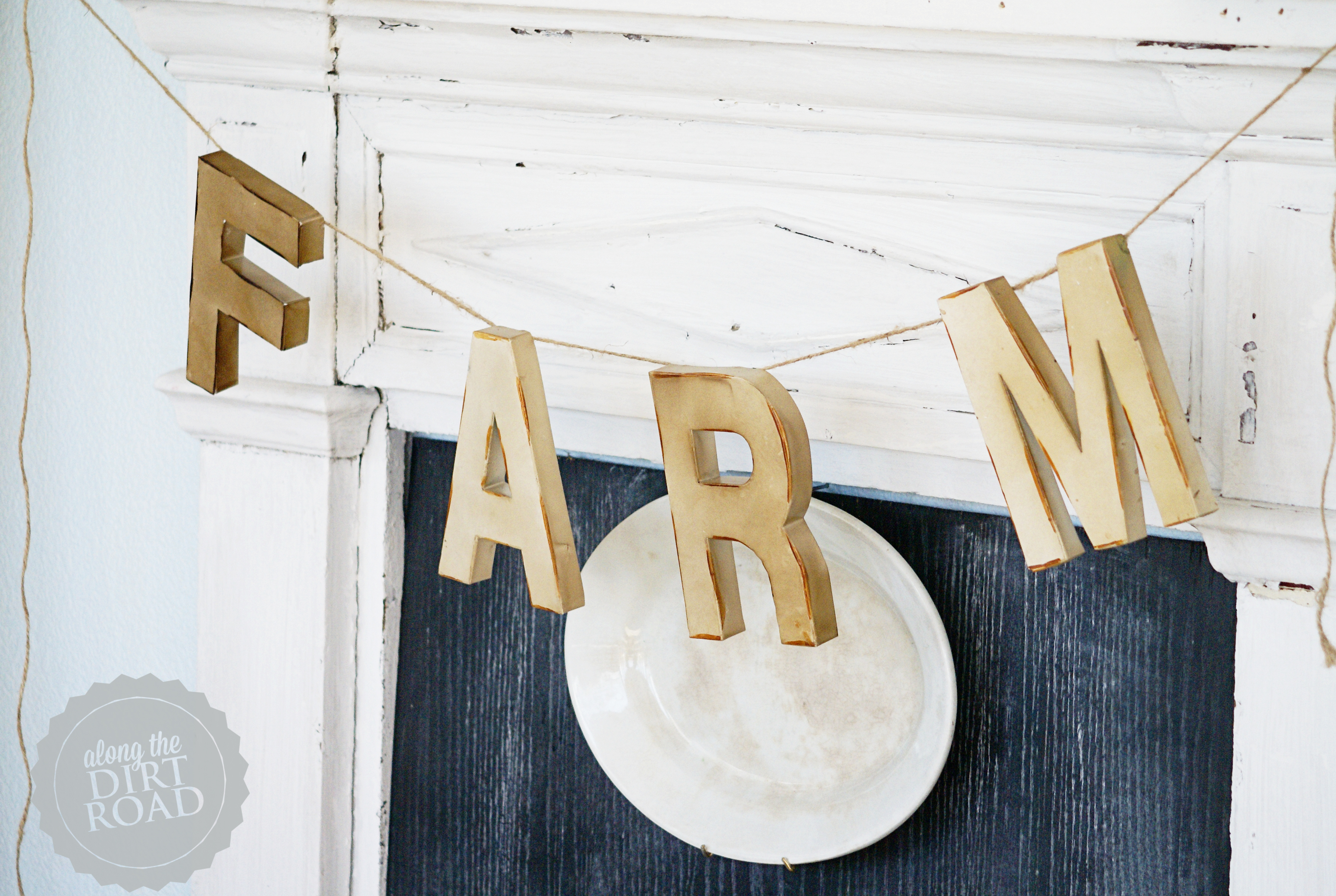 bunting, farmhouse style, home decor, mantle, simple, simplify